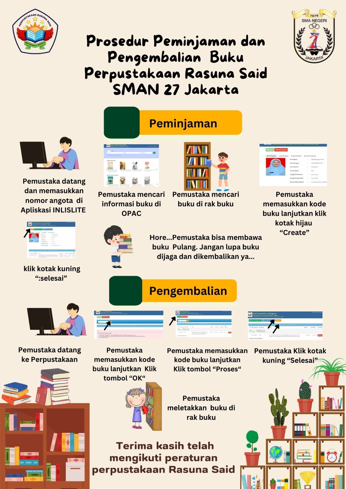 Panduan lengkap untuk siswa dalam meminjam dan mengembalikan buku di Perpustakaan Rasuna Said SMAN 27 Jakarta