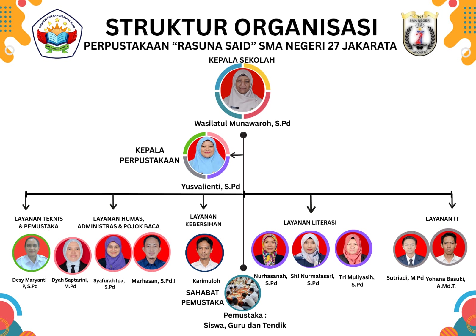 Susunan Tim Pengelola Perpustakaan Rasuna Said SMAN 27 Jakarta dalam Mendukung Layanan Literasi Sekolah